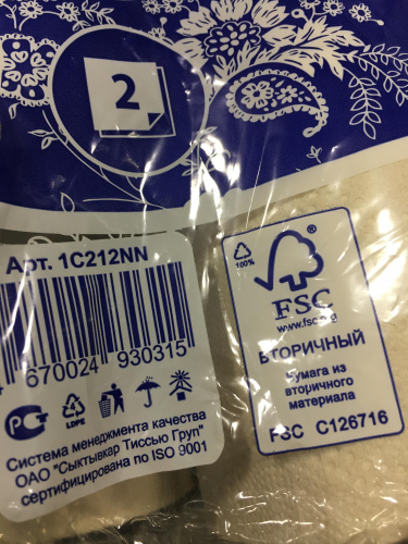 Плюс она не хуже первички, такая же мягкая и плотная, не то, что там тонюсенький слой, как у некоторых. Сейчас посмотрела, так там и знак FSC для вторички стоит. Так что норм вообще.