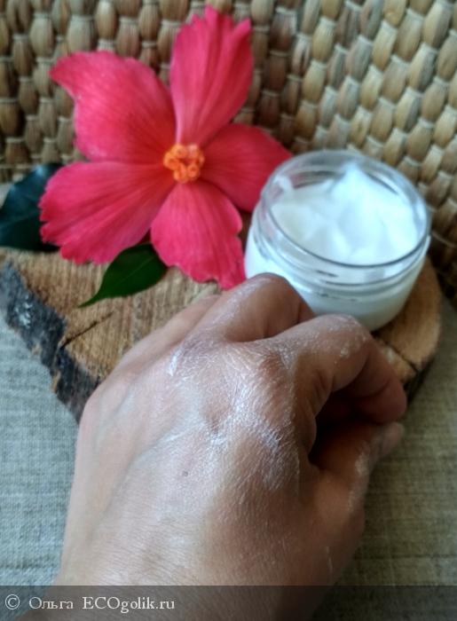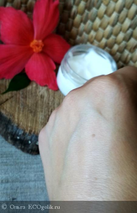 При нанесении на кожу ощутимо полосит, но впитывается довольно быстро и без остатка. Не смотря на масла в составе, никакой жирной и липкой плёнки не оставляет.