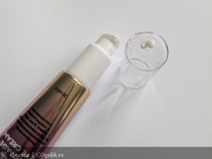 Во-вторых, приятно впечатлил объема крема, который составил 30 мл. Сейчас редко у кого встретишь такой хороший объем средства вокруг глаз. Обычно выпускают маленькие.