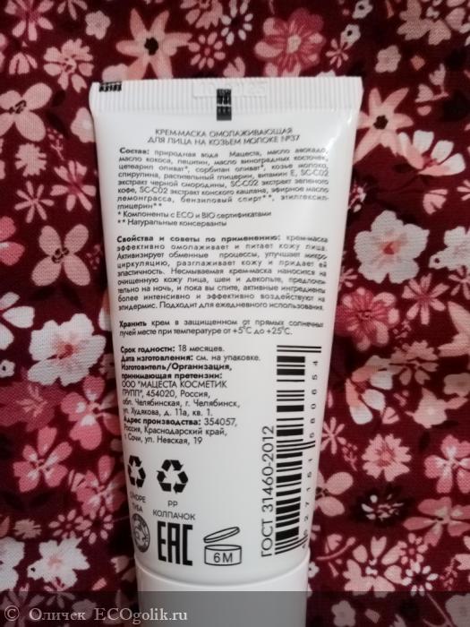 Оличек: Крем-маска омолаживающая для лица на козьем молоке №37 MATSESTA