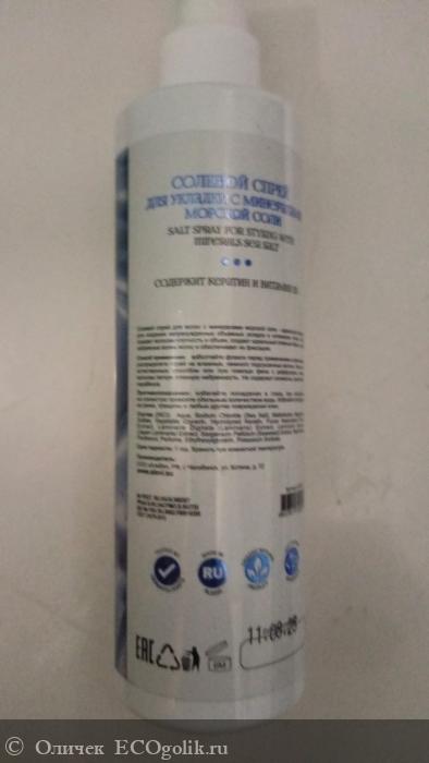 В составе только натуральные компоненты. А фиксация осуществляется за счет соли. Обычно у меня волосы не держат укладку. Я иногда использую бигуди, чтобы завить волосы на концах. Но это великолепие долго не держалось из-за влажности воздуха. А этот солевой спрей помог мне значительно дольше наслаждаться присутствием локонов.