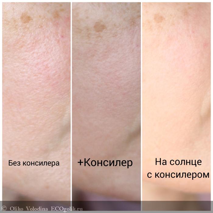 Консилер не сушит, не подчеркивает шелушения, морщины, не западает в рельеф.