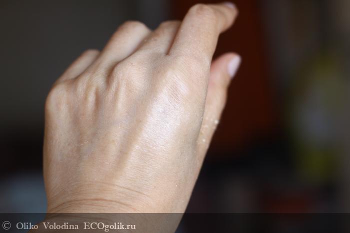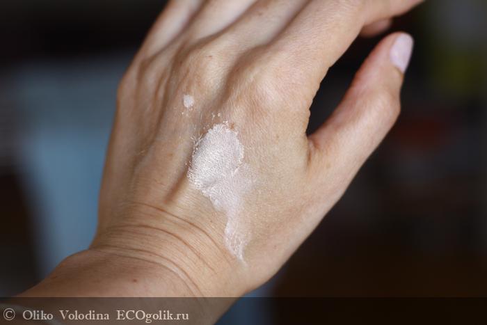 Текстура очень удобна тем, что не пылит, не летит в глаза от легкого дыхания или быстрого движения. При этом, по коже распределяется ровно, не комкуется.