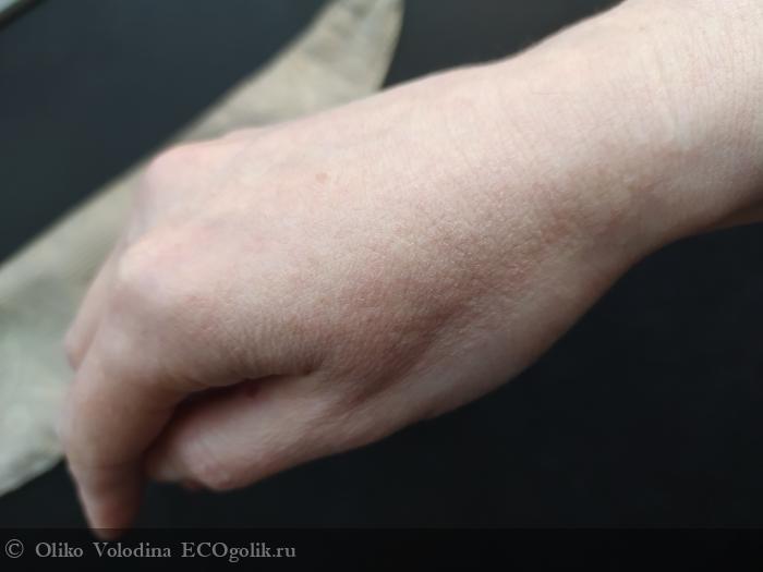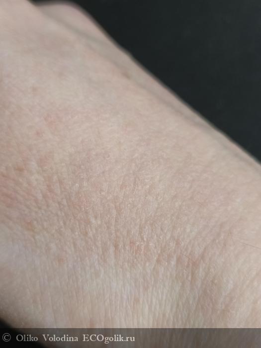 На коже есть ощущение тонких невидимых перчаток. Крем обволакивает кожу защитным слоем. Тактильно кожа более гладкая, сразу мягкая.