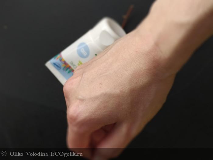 Он легко распределяется тонким слоем, по ощущениям немного скользский.