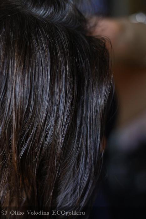 Ниже волосы в процессе высыхания: блеск у корней, гладкость, пушистости не наблюдается.