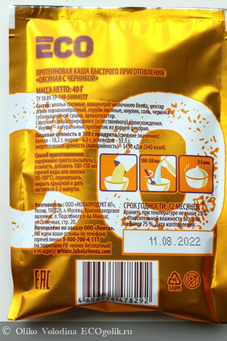 Oliko Volodina: ЕСО Каша овсяная протеиновая с черникой, 40г, быстрого приготовления : мой био-хакинг каш!