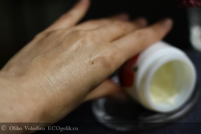 Крем, кстати, распределяется без усилий, он как сливочное масло или вершки натуральных сливок – тает на коже, раскатывается легким скольжением и тончайшим слоем.