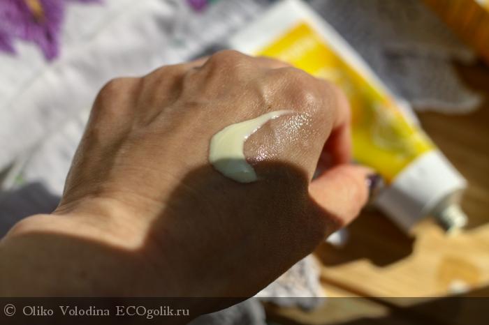 Аромат у крема немного специфичен, напомнил мне ланолиновую Веледу Skinfood. Но мне этот аптечный и немного шерстяной запах даже нравится. Он не раздражает и не напрягает, а сама отдушка крема не повлияла на чувствительность кожи и не вызвала аллергию.