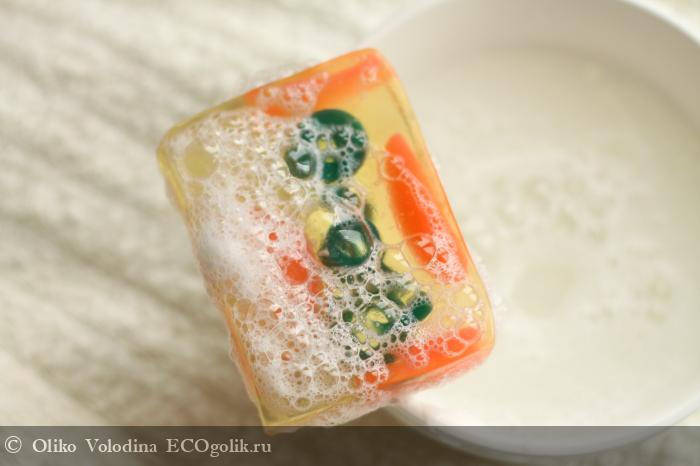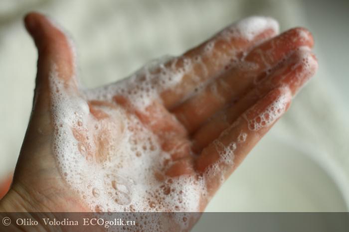 Мыло отлично пенится - и крупно и мелко, оседая в нежную муссовую пенку.