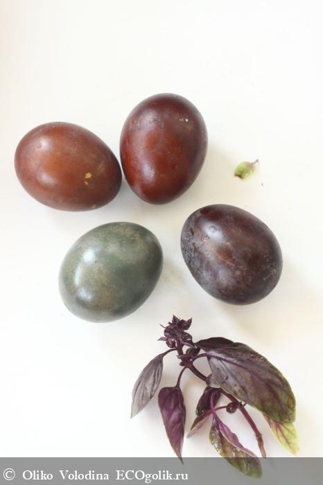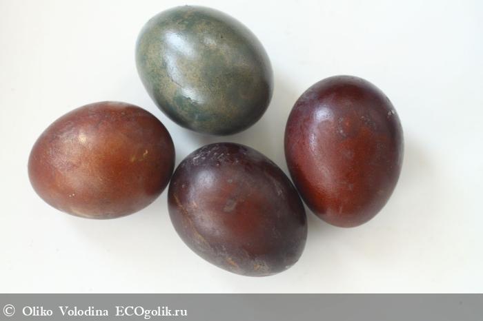 Далее яйца коричневые, которые окрашивали шелухой красного лука.