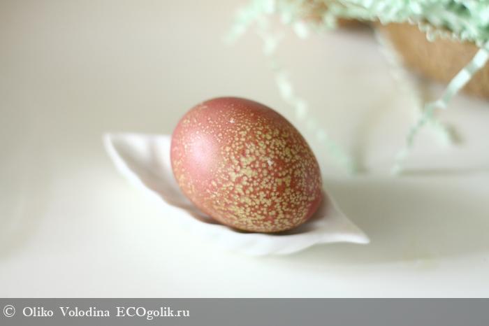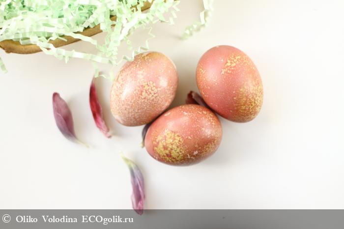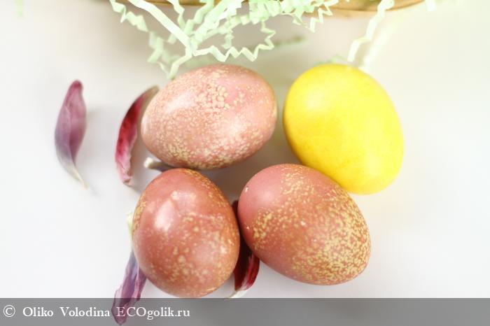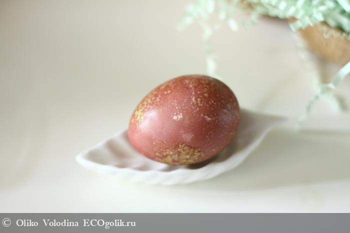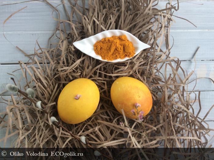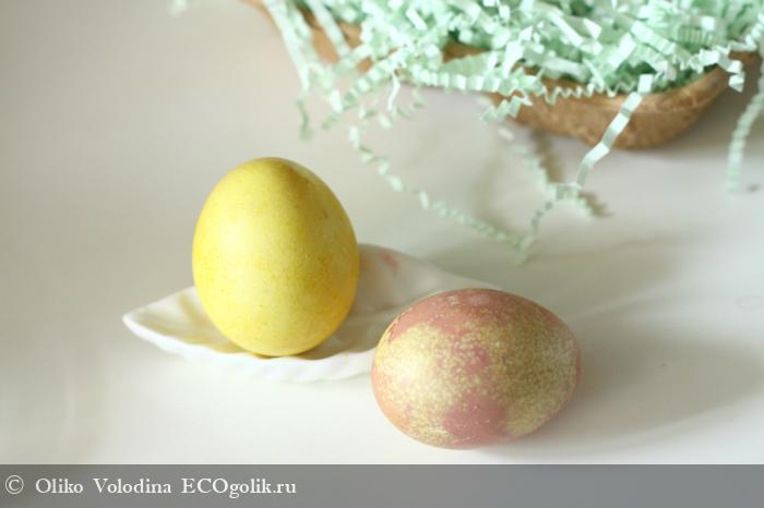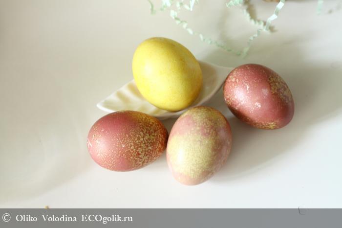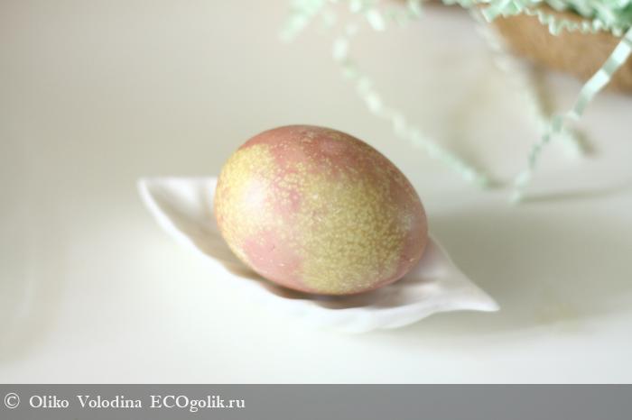 Самое загадочное - это то, что пятна оказались желтоватые, я не планировала такой эффект. Он отлично сыграл в дуэте с яйцами, окрашенными куркумой.