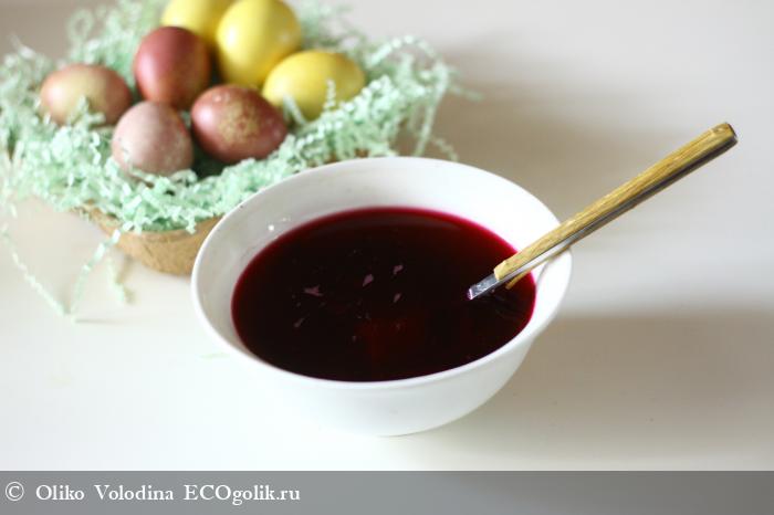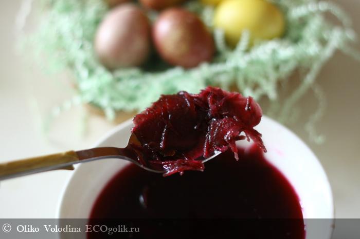 Пару лет я пробовала красить яйца в свекле и совершенно неудачно: цвет не закреплялся, не ложился.