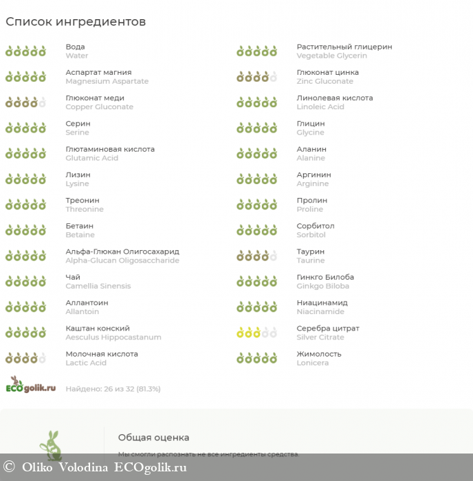 СОСТАВ – сервисом прочитан не полностью из-за косметических комплексов, но раскрывая скобки – не нашла «потенциально опасных» компонентов.