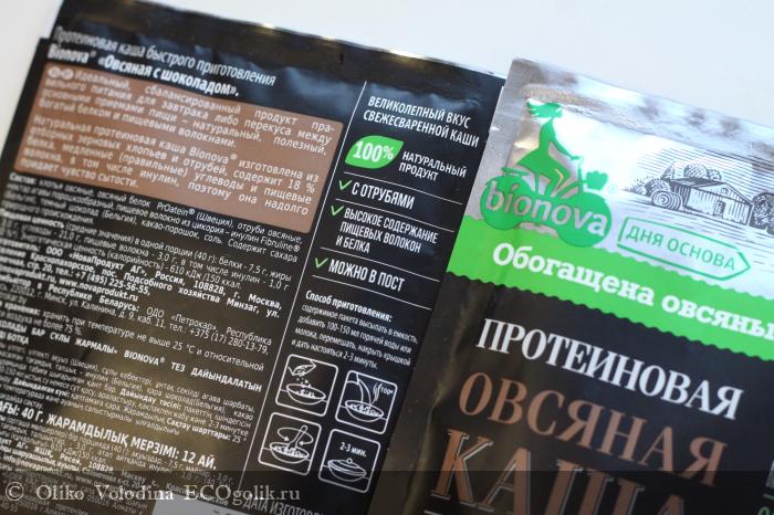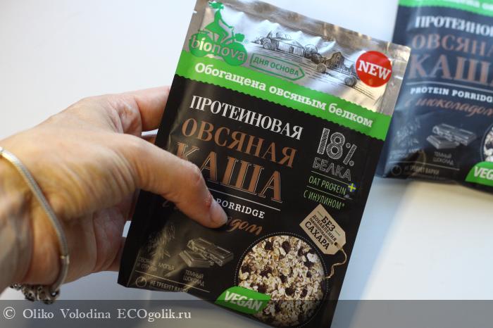 - Протеиновая каша BIONOVA содержит дополнительно овсяный белок PrOatein из Швеции и белковая ценность выше почти вдвое при одинаковом объеме.
