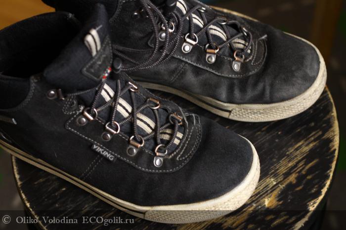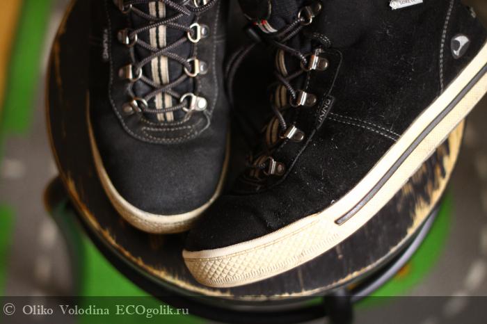 Оба ботинка после очищения с MAYERI: второй еще не успел высохнуть: