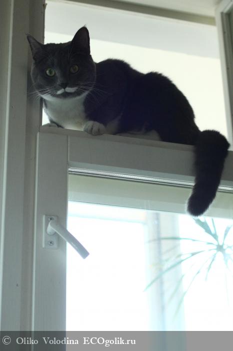 Регулярно приходится протирать стекло на лоджию, потому что это теперь самый популярный снаряд для развлечений у кото-жителя: он с разбегу запрягивает наверх и опять следы лап на стекле.
