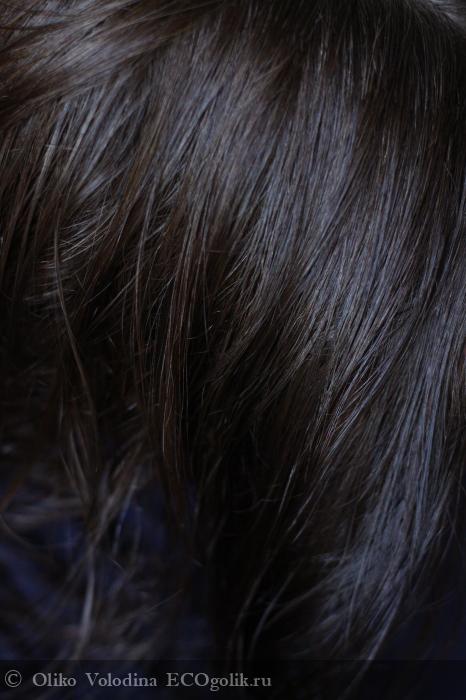 После подсыхания - виден уже прекрасный блеск и волосы не пушатся. Выглядят красиво.