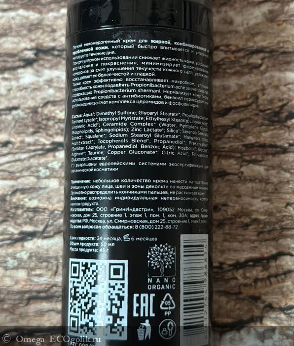 Omega: Крем для лица "Nano Organic" Anti-Acne для проблемной кожи