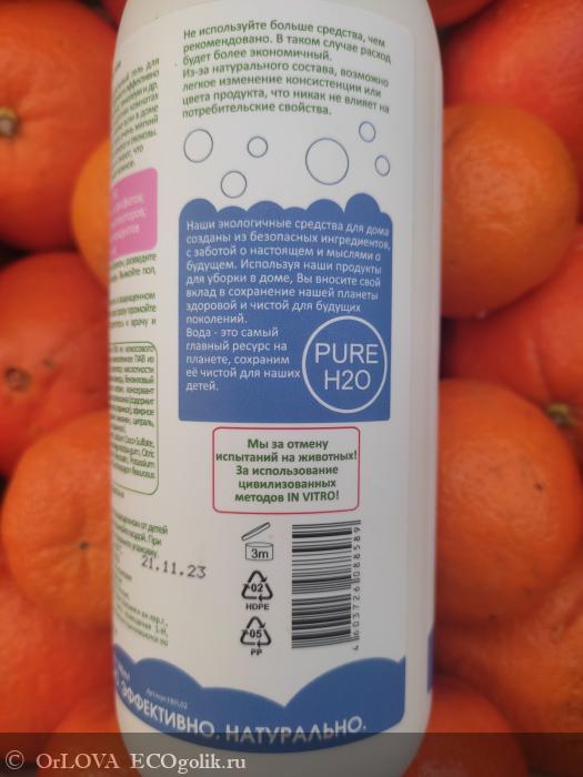 Вода приобретает легкий натуральный цитрусовый-апельсиновый аромат. Который при мытье пола ненавязчиво распространяется на всё помещение.