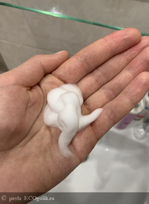 Лицу чертовски приятно соприкасаться с белоснежной невесомой пенкой, словно окунаешься в ласковые воздушные облака. Продукт ликвидирует тонирующие средства, нежно очищает лицо, не оставляя дискомфортного чувства «стянутой кожи». Значительный плюс - при попадании в глаза пенка не раздражает слизистую и не вызывает пощипывание. Лицо после процедуры матовое с идеальным ровным тоном.