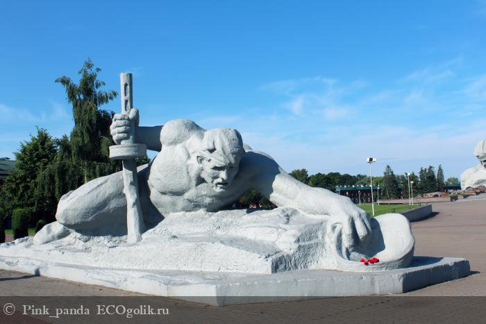 А это знаменитый памятник «Жажда». Трубопровод Крепости был уничтожен в первый день нападения, а лето стояло жаркое. Казалось бы, что вот река Буг рядом, но добраться до берега было почти невозможно и очень много солдат было убито в попытках достать пару драгоценных капель воды. «Почерневшие лица бойцов, запекшиеся от жажды губы свидетельствовали о неимоверных страданиях людей».