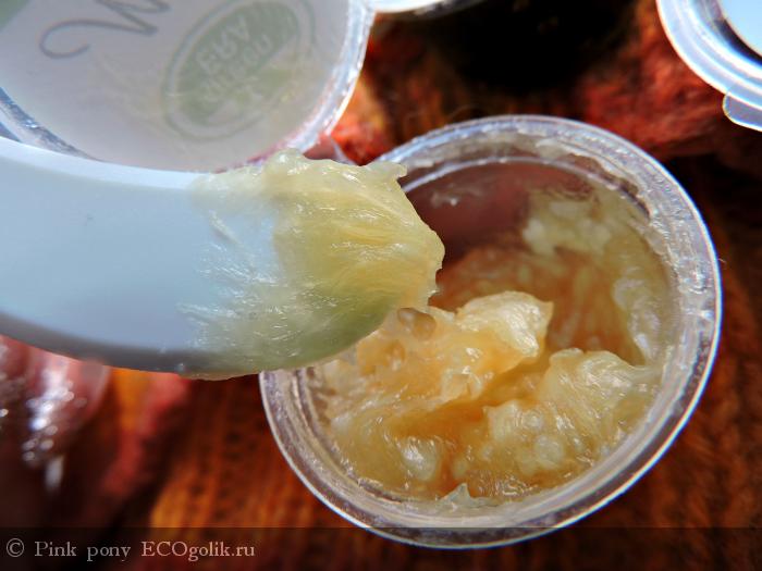 Применение. Смачиваю кожу лица и наношу джем-мыло, распределяю по коже ,хорошо массирую и смываю. Мне показалось, что это джем мыло распределялось в разы легче, чем Ревень и мед.