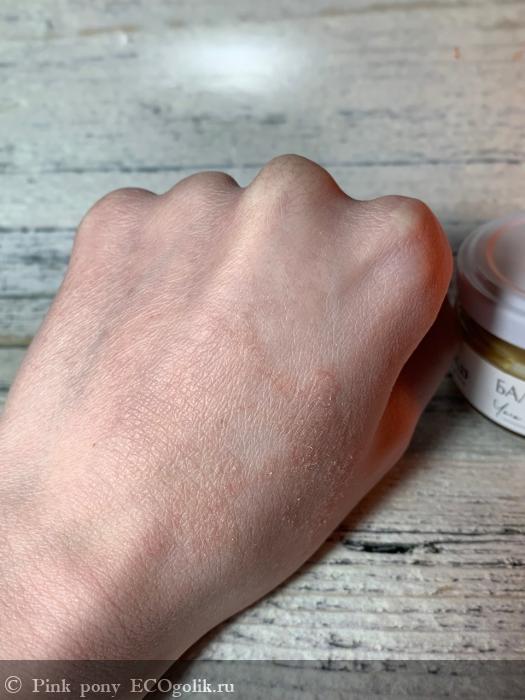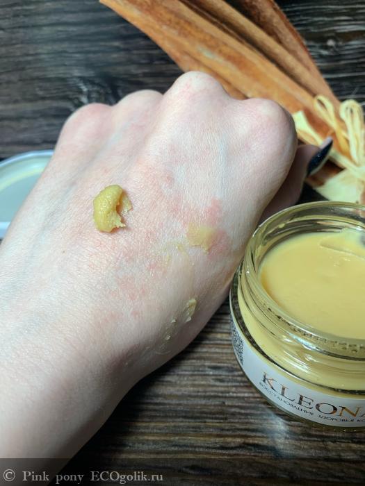 Текстура довольно мягкая, крупинок нет. От тепла рук тает и хорошо распределяется по коже. Масло плотное, поэтому я использую его на ночь, либо днём, когда у меня выходной.