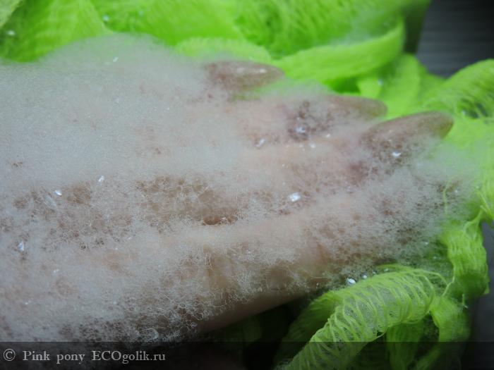 Пенообразование. Пены много и она очень мягкая и воздушная. Приятно обволакивает и отлично очищает. Смывается с кожи полностью, не оставляется чувства мыльности. При этом кожу не сушит и не стягивает. Пока я крема для тела не использую.