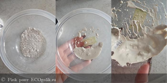 Способов применения уйма. Разводится очень легко: можно с водой, молоком, гидролатом или даже с йогуртом. У меня получается однородная кремовая масса без комков, но я пока пробовала только с водой разводить.