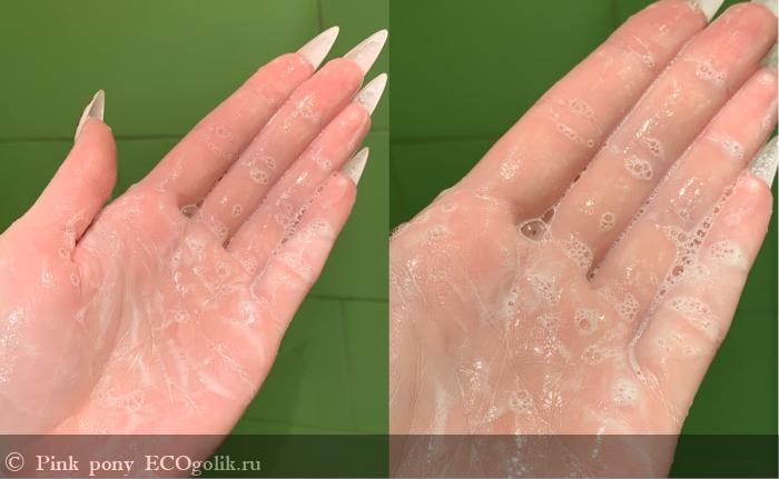 Пены от крем-мыла много, очищение отличное. Я часто мою руки во время готовки, поэтому с мылом контактирую каждый день. Мыло не сушит кожу.