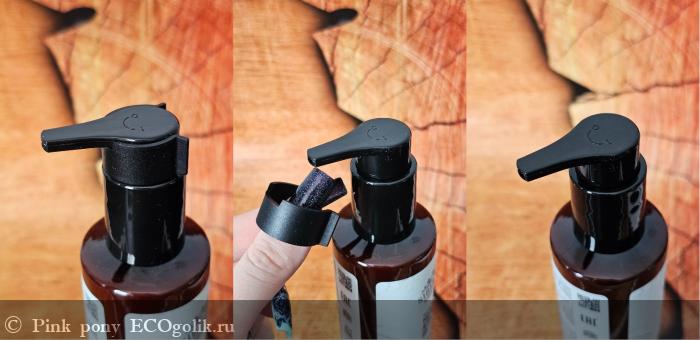 Флакон приятно держать в руке, он не скользит и не пачкается, а дизайн — минималистичный и аккуратный. На полке в ванной смотрится красиво и стильно.