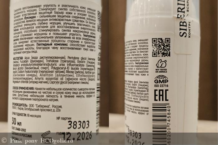 Pink pony: Натуральная антивозрастная гиалуроновая сыворотка с пептидным комплексом и фукоиданом для лица, шеи и зоны декольте SIBERINA