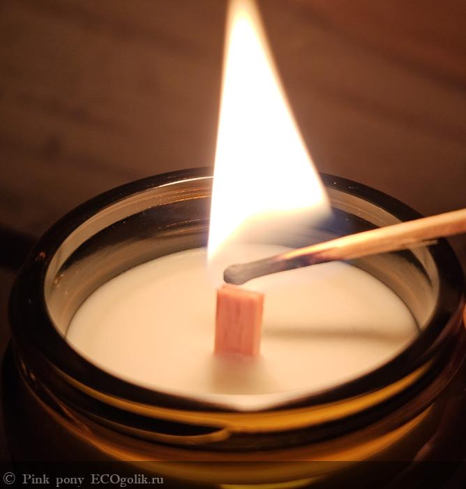 Внимание! Аромасвеча может прийти с хлопковым или уже с древесным фитилем!