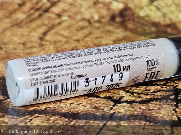 Упаковка. Пластиковая туба с удобным аппликатором. Такой формат позволяет легко наносить масло на губы даже на ходу, а герметичная крышка предотвращает протекание. Упаковка выглядит стильно и лаконично, не стыдно такую достать из сумочки.
