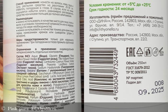 Аромат у тоника цветочный. В составе гидролат розы, липы и василька. Есть экстракт пиона и отдушка.