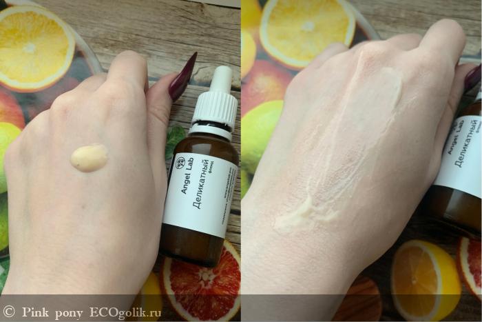 Она интересная, в меру жидкая, тягучая, но не липкая. Не забываем, что перед применением необходимо встряхнуть флакон.