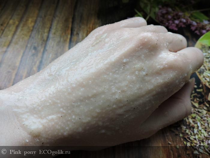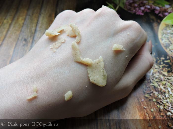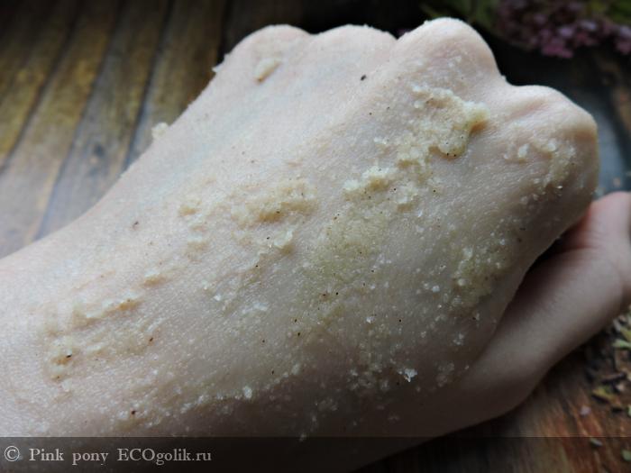 Скраб дает согревающий эффект, кожу может слегка пощипывать, так как он на меду. Но всё в пределах адекватности, кожа не горит и нет чувства дискомфорта.