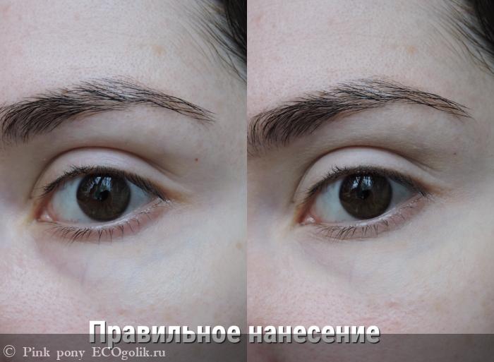 Тут я не увлажнила кожу, не стряхнула излишки продукта и нанесла его ну прям много! Это сильно заметно, на вернем веке прям неудачно:D