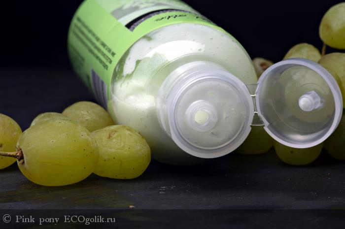 Гель я пробовала использовать двумя способами, сначала тратила его без мочалки, расход на удивление оказался маленьким, пенится гель не сильно, очищает очень мягко, совершенно не сушит, скорее увлажняет.Я хоть и привыкла использовать мочалку и не люблю, когда мало пены, но тут такой чудесный аромат, что я не прочь помассировать кожу руками и подольше понаслаждаться этим умопомрачительным виноградом.