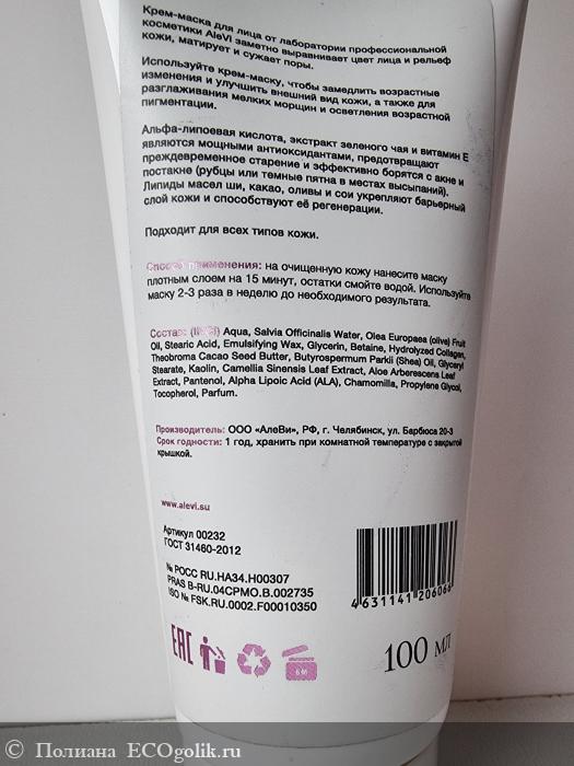 Очень интересная Антиоксидантная крем-маска с альфа-липоевой кислотой от AleVi. Это не просто маска с глиной для кожи любого типа, особенно жирной, пористой или комбинированной.