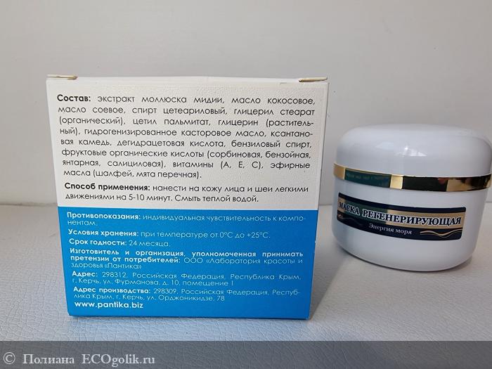 Мне нравятся составы продукции Лаборатории красоты и здоровья "ПАНТИКА". Например, Маска регенерирующая «Энергия моря» содержит экстракт моллюска мидии, масло кокосовое, масло соевое, касторовое масло, фруктовые органические кислоты (сорбиновая, бензойная, янтарная, салициловая), витамины (А, Е, С), эфирные масла (шалфей, мята перечная). Пахнет натурально, вот как раз травками, немного мятой.