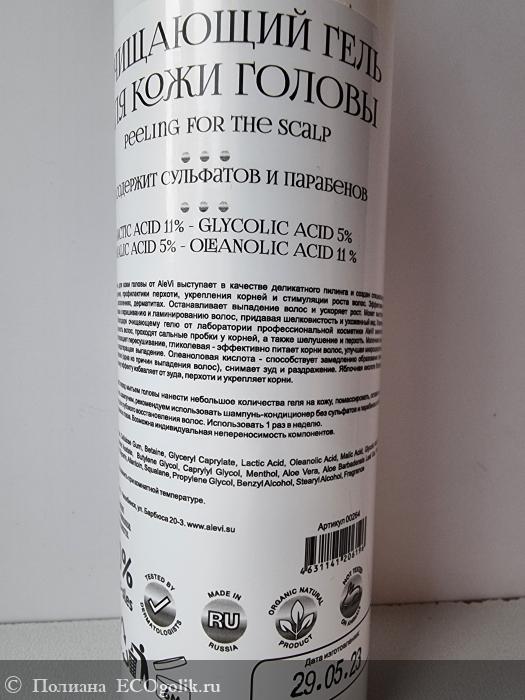 Я использую Очищающий гель (пилинг) для кожи головы AleVi перед применением шампуня. Кто сказал, что очищать, скрабить мягкими кислотами, отшелушивающими средствами кожу головы не эффективно и не нужно? Ошибочное мнение. Кожа головы, как и кожа лица тоже должна регулярно очищаться от ороговевших частиц, от верхнего "забитого" слоя эпидермиса, забитого жиром, грязью, пылью. Да. Мы моем волосы шампунем, скажете вы.