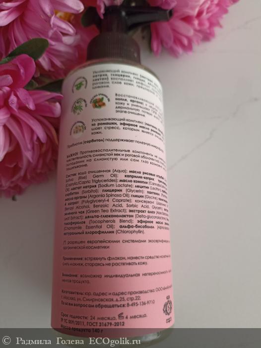 Активные компоненты в составе средства: масла рисовых отрубей, конопли и арганы, а также экстракты зелёного чая и алоэ.