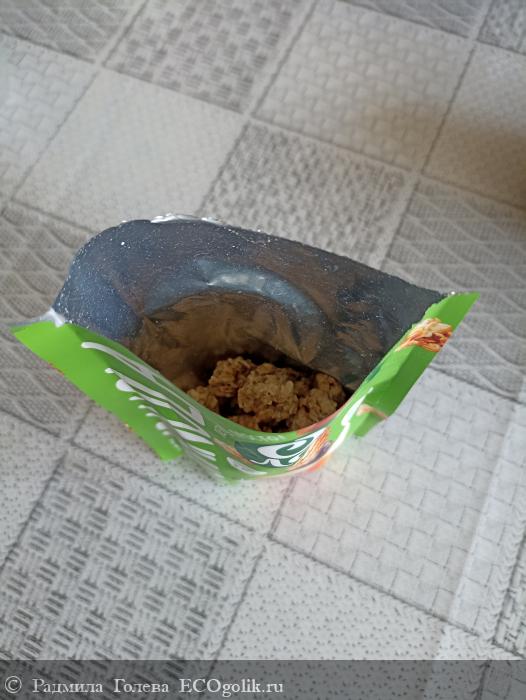 Бывает, что во время транспортировки кусочки гранолы рассыпаются на хлопья. Но, в этом случае, пришли почти все целые.