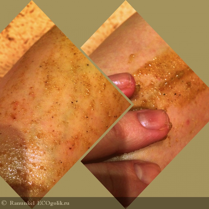 Цвет у скраба желтовато-коричневый, консистенция довольно плотная.