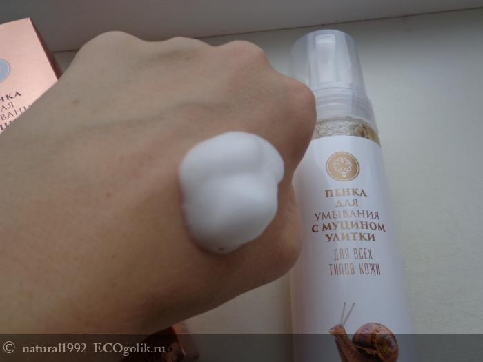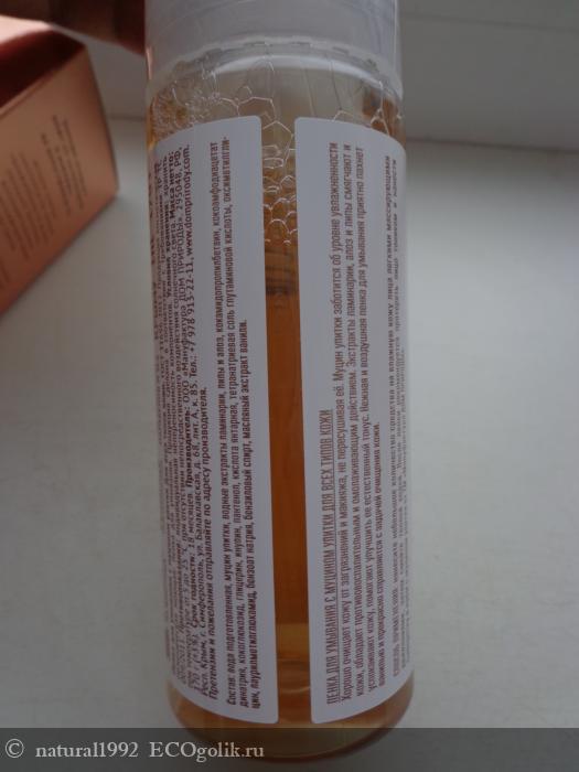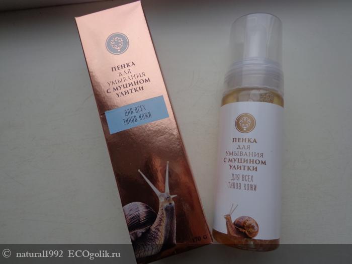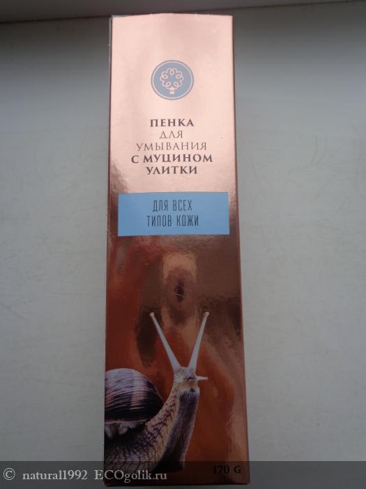 Пенка находится в красивой, блестящей упаковке, с изображением улитки