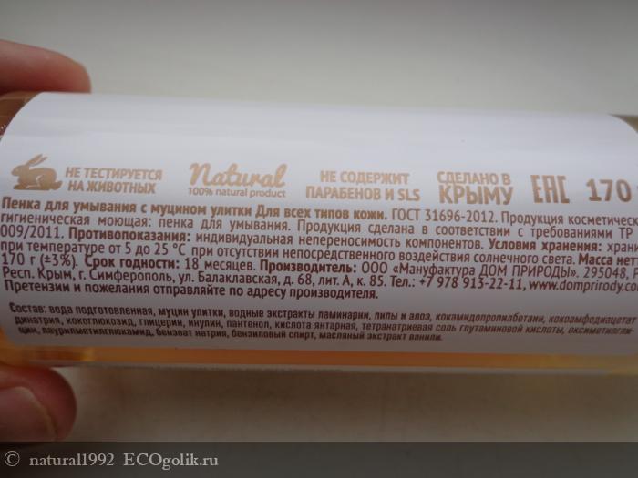 Всем привет! Сегодня расскажу еще об одном классном продукте по уходу за лицом, от Крымской мануфактуры Дом природы. Это пенка для умывания с муцином улитки для всех типов кожи.