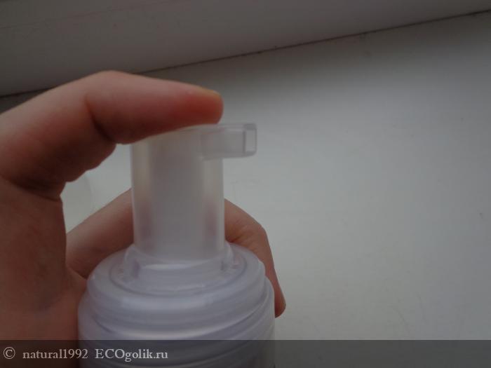 Дозатор в виде помпы, сделан очень качественно, за месяц из строя не вышел. Продукта выдает легко, но в меру. Мне одного нажатия оказалось мало. Чтобы умыться мне нужно 2-3 таких нажатия.