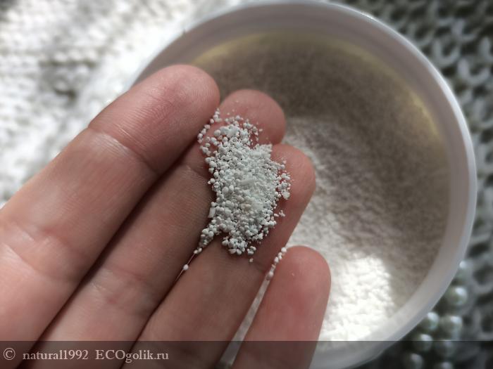 Мне понравилось что объем большой и хватит надолго. По цвету порошок чисто белый. Представлен в виде гранул. Не имеет практически никакого аромата. Расход маленький если использовать только на пятна. При контакте с водой гранулы пенятся довольно обильно. Порошок не пылит и не вызывает кашель.